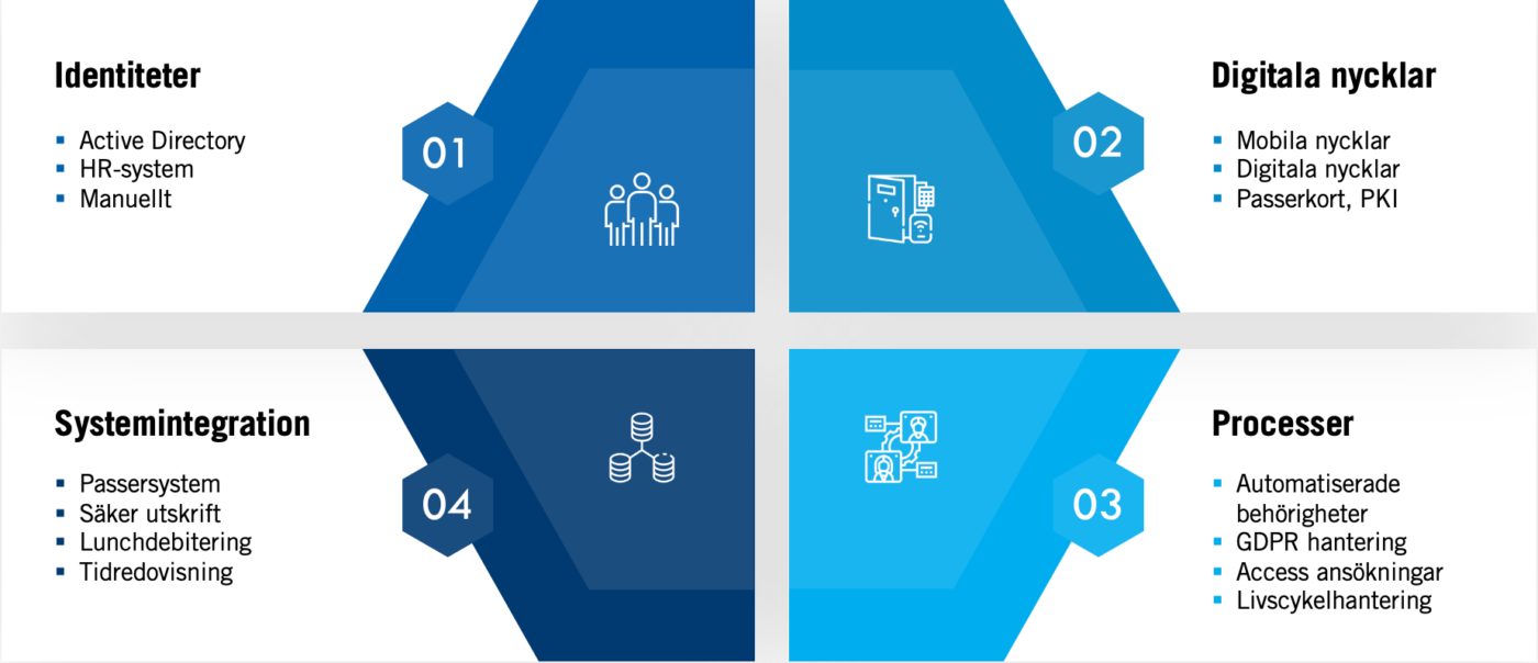 Ett överordnat system fungerar som navet i er identitetshantering. Vanligtvis har organisationer flera olika källsystem, såsom AD (Active Directory/Entra ID), HR-system och system som använder identiteter för olika tjänster såsom passersystem, follow-me print och hantering av ID-kort. Dessa system administreras och övervakas genom olika gränssnitt. Med ett överordnat system integreras dessa källsystem mot det överordnade systemet, vilket ger administratören ett enhetligt gränssnitt.